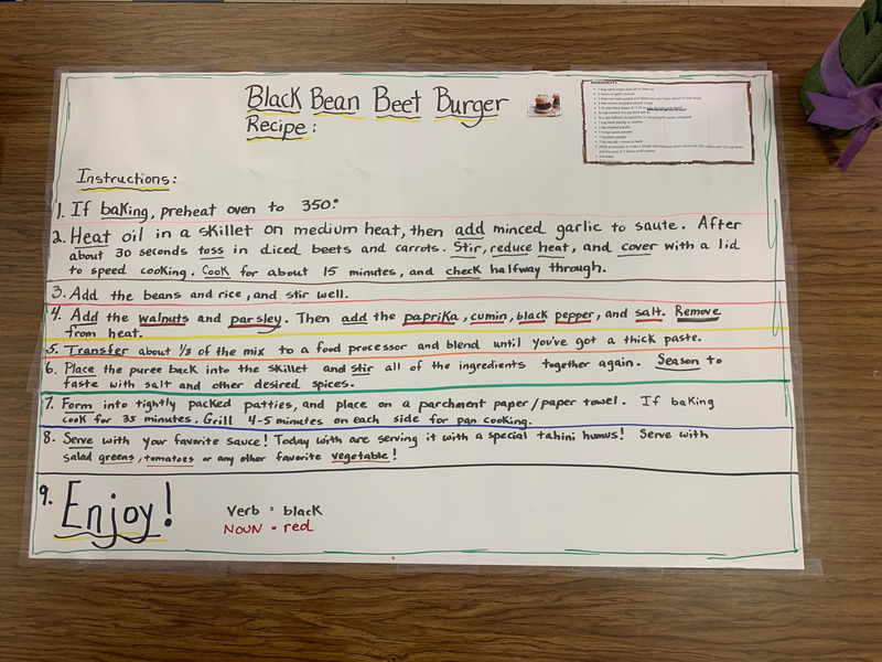 The recipe for black bean beet burgers which was also made into a literacy game