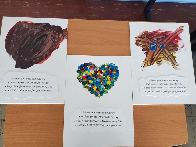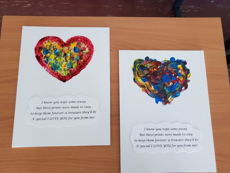 Last week the students in the Care Academy made a work of art to be given to their mothers/guardians for Mother's Day. The students painted with finger paints to form hearts using their fingerprints as part of the design. Underneath each painting the students included a poem. Please enjoy the photos below of their projects: